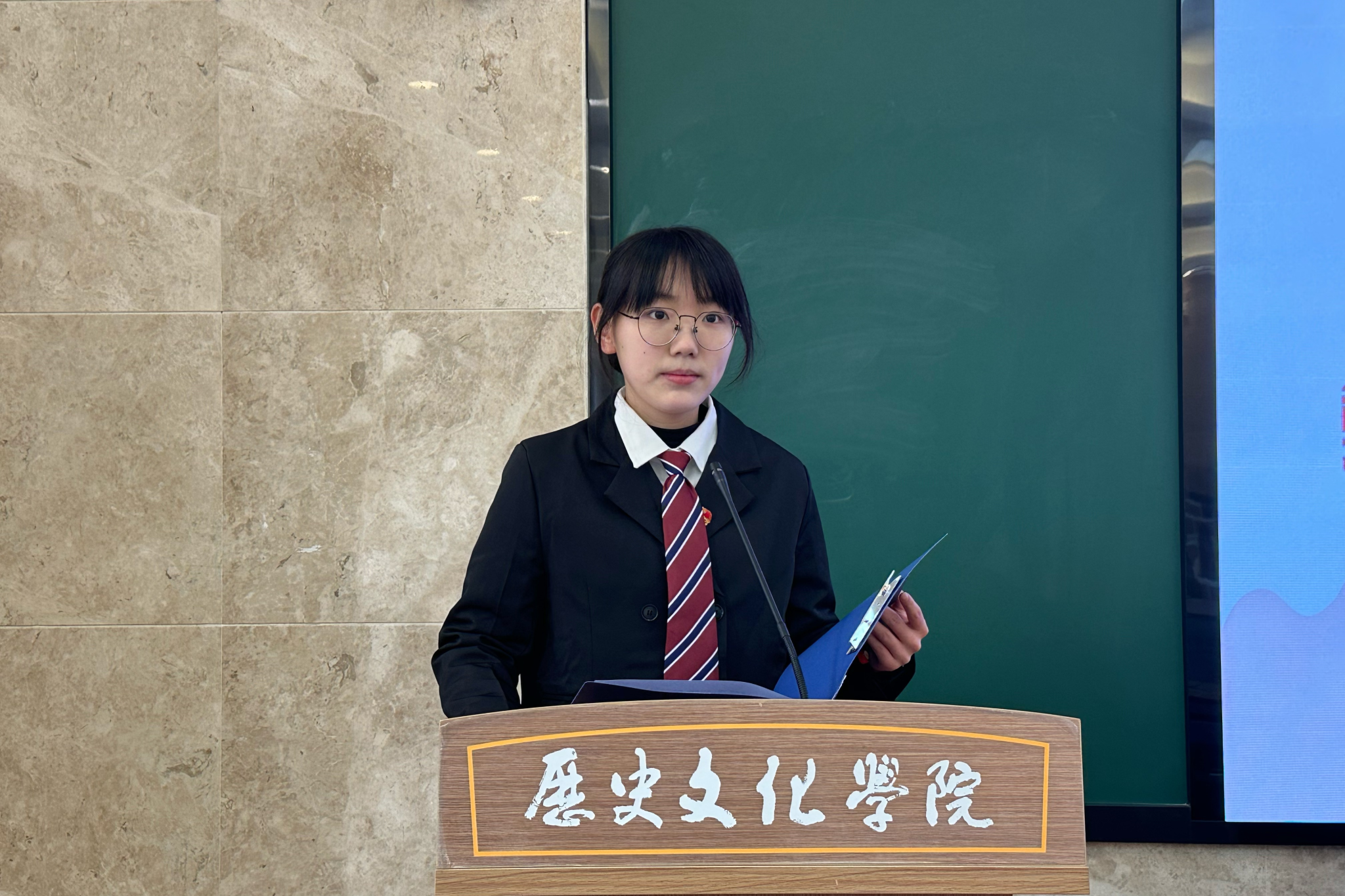 黄梦妮从“知”“行”“责”“趣”四个方面梳理历史学专业学生的成长路径。在学习方面,她回溯高中阶段突破历史学科瓶颈并与之结缘的经历,阐释了坚持与积累的重要性。在实践层面,她结合自身参与两次三下乡暑期社会调研的经验,提出社会实践应聚焦服务实效,媒体融合时代,青年需整合多元平台优势,在实践中传播青年声音。此外,黄梦妮还讲述了自己担任学生干部的成长历程,鼓励同学们勇于承担责任,敢于“吃亏”,在服务他人的过程中锻炼自己。最后,她分享了自己放松的“五分钟治愈法”,帮助同学们在忙碌的学习和生活中寻找乐趣,保持积极的心态。