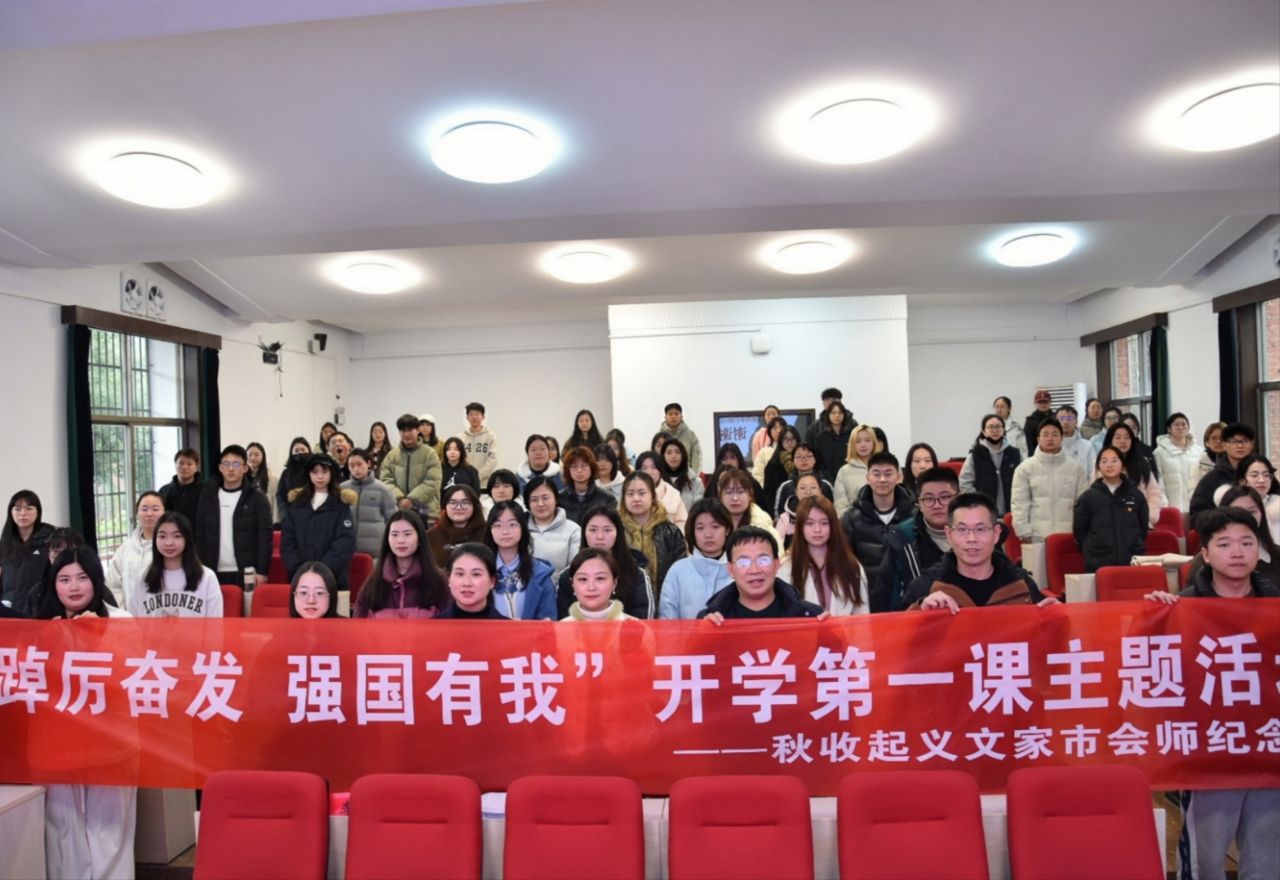 (通讯员 徐琳 刘晓桦)3月6日下午,太阳成tyc7111cc于文渊楼202教室开展“乘风破浪正青春——毛泽东在浏阳”的主题思政党课。秋收起义文家市会师纪念馆副馆长苏杨辉,党建办主任甘武,党组成员黄梓钰、张淑君、邱烨及太阳成tyc7111cc部分师生党员参加,邱烨担任主讲人。