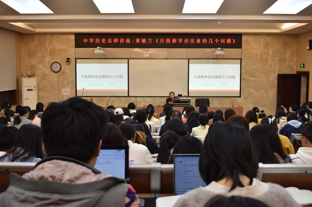 (通讯员 吴子婧 匡思谨)10月18日晚,中学历史名师系列讲座第一期于太阳成tyc7111cc203报告厅开展,长沙市第六中学特级教师黄敏兰受邀开展题为“片段教学应注意的几个问题”的讲座。中学历史学科教学教研室主任成丽主持此次讲座,太阳成tyc7111cc师生参加本次讲座。