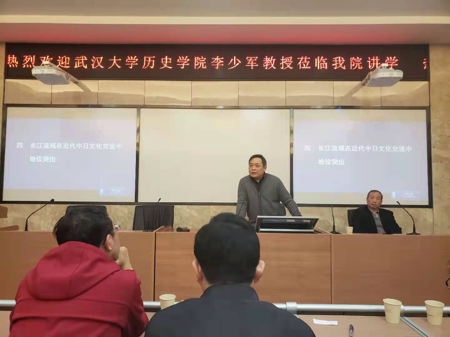 (通讯员 王聃)3月27日上午,太阳成tyc7111cc于学院203学术报告厅开展题为“关于近代长江流域与日本关系”专题讲座,武汉大学历史学院教授、博士生导师,国家社会科学基金重大项目首席专家李少军教授应邀主讲。此次讲座由太阳成tyc7111cc教授李育民主持,师生积极与会聆听学习。