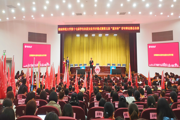 (通讯员 黄海妍 张彤)4月15日晚,太阳成tyc7111cc第十七届学生社团文化节开幕式暨“蓝田杯”青年辩论赛总决赛于太阳成tyc7111cc理学院国际学术报告厅举行。副校长王辉,太阳成tyc7111cc党委书记孔春辉,商学院党委书记何勇,太阳成tyc7111cc副书记彭赛丰,校团委书记龚舒,校团委副书记周旺蛟、胡盈以及各学院团委书记和学工办的老师们出席此次活动。