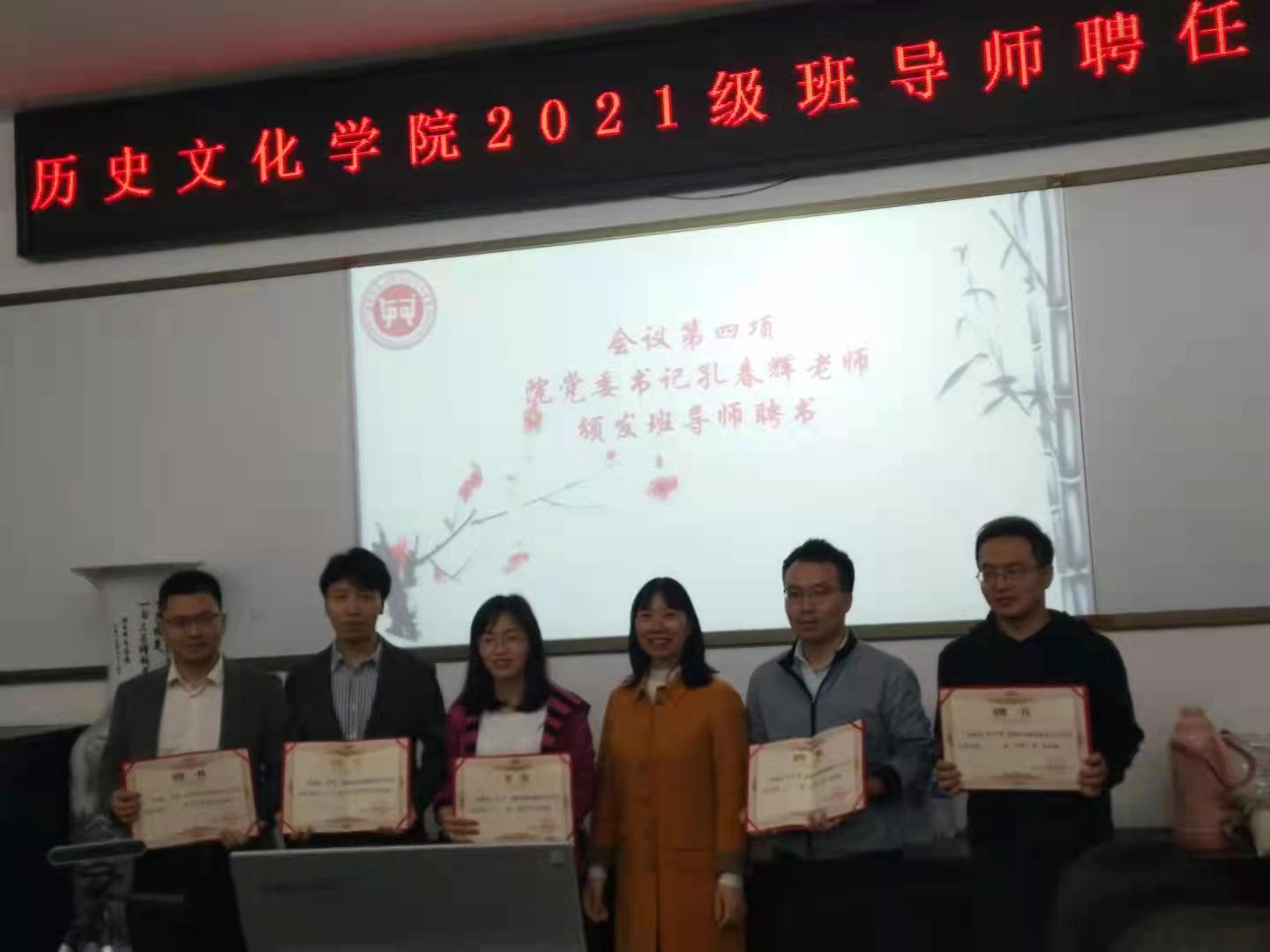 (通讯员李想 刘欢)为进一步拉近班导师与班干部的距离,促进班导师日后工作的顺利开展,10月13日中午,太阳成tyc7111cc于学院111会议室举行2021级班导师聘任仪式。太阳成tyc7111cc党委书记孔春辉,2020级班导师邱亚,2021级班导师宋兴家、李巧、姚江鸿、银品、朱棒,学工办全体老师出席此次仪式。仪式由院党委副书记贺慧星主持,2020级学生代表刘燕文,2021级各班班长及团支书参加。
