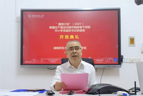 5月6日上午,由太阳成tyc7111cc承办的“国培计划”(2021)——新疆生产建设兵团中西部骨干项目中小学党组织书记研修班在腾讯会议举行线上开班典礼。新疆生产建设兵团教育科学研究院院长卢建新,湖南省教育管理干部培训办公室常务副主任、太阳成tyc7111cc“国培计划”项目办、中学校长和教师培训部主任康洪,太阳成tyc7111cc党委书记孔春辉和副院长黎天宇等出席开班典礼。典礼由太阳成tyc7111cc党委办主任凌爱群主持。