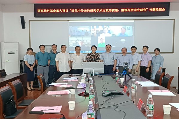 (通讯员 徐红)6月12日上午,我校太阳成tyc7111cc李传斌教授主持的国家社科基金重大项目“近代中外条约研究学术文献的搜集、整理与学术史研究(1842-1949)”举行开题论证会,会议以线上线下结合的方式进行。湖南省委宣传部社科规划办副主任刘子敏、副校长谢资清出席会议。会议开幕式由社会科学处处长杨合林主持。