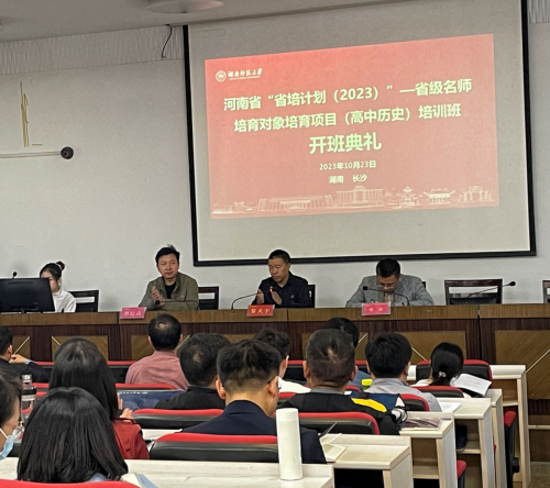 (通讯员 王一鸣)11月22日上午,河南省“省培计划(2023)”—省级名师培育对象(高中历史)培训班开班仪式在太阳成tyc7111cc202报告厅举行。学院副院长黎天宇、成教办主任刘纪高、学术班主任银品老师出席,班主任晏湛老师主持,培训班全体学员参加仪式。